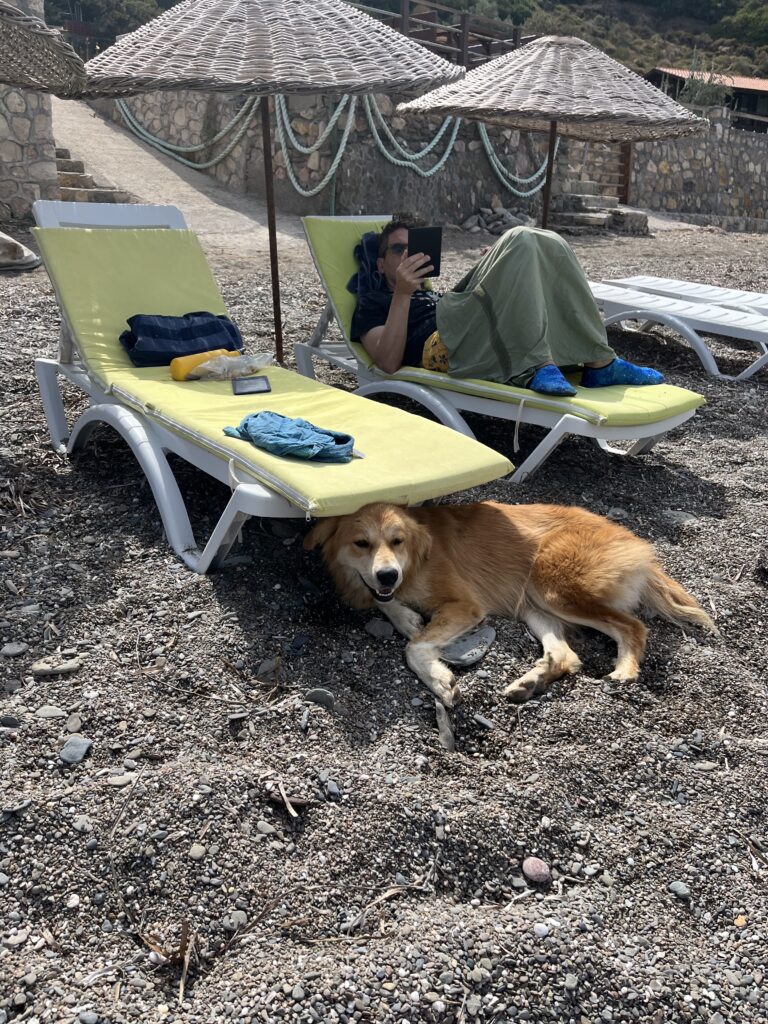 And this beach delivered. It’s a very small village on a rocky beach with crystal blue water. We have been hiking, reading, snorkeling (15 species of fish, mollusks and sea urchins) and recharging. Today we saw porpoises!